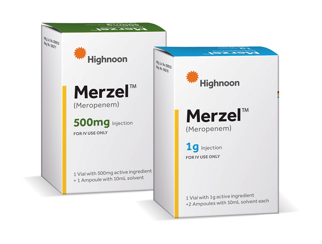 Merzel 500mg IV Injection 1 vial of 500 mg meropenem and 1 ampoule of 10mL solvent.