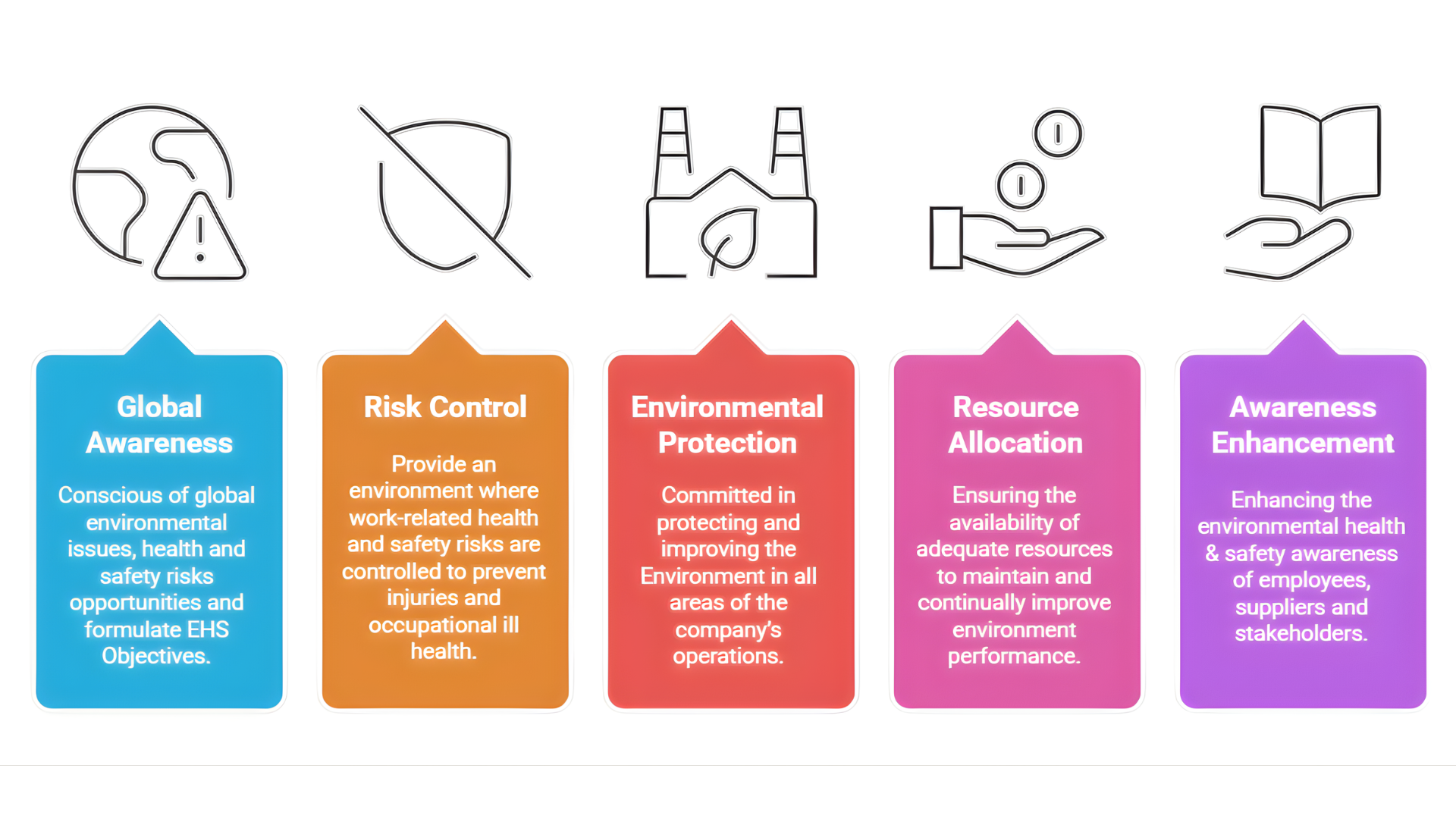 - Ensuring the availability of adequate resources to maintain and continually improve environment performance and control EHS risks and opportunities.